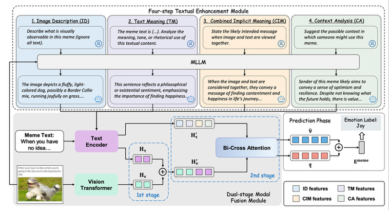 2025年11月,浙江大学计算机系统结构实验室(ARClab)施熠为第一作者的论文“Enhancing Meme Emotion Understanding with Multi-Level Modality Enhancement and Dual-Stage Modal Fusion”被人工智能顶会The 40th Annual AAAI Conference on Artificial Intelligence (AAAI)录用。该论文由陈文智教授和魏成坤老师指导,提出了一种针对模因(meme)的情感理解框架,通过对原始模因信息的多层级模态增强以及细粒度的双阶段模态融合策略,更加准确地捕捉了模因背后的情感倾向,为多模态情感分析提供了一种有效的实现方案。